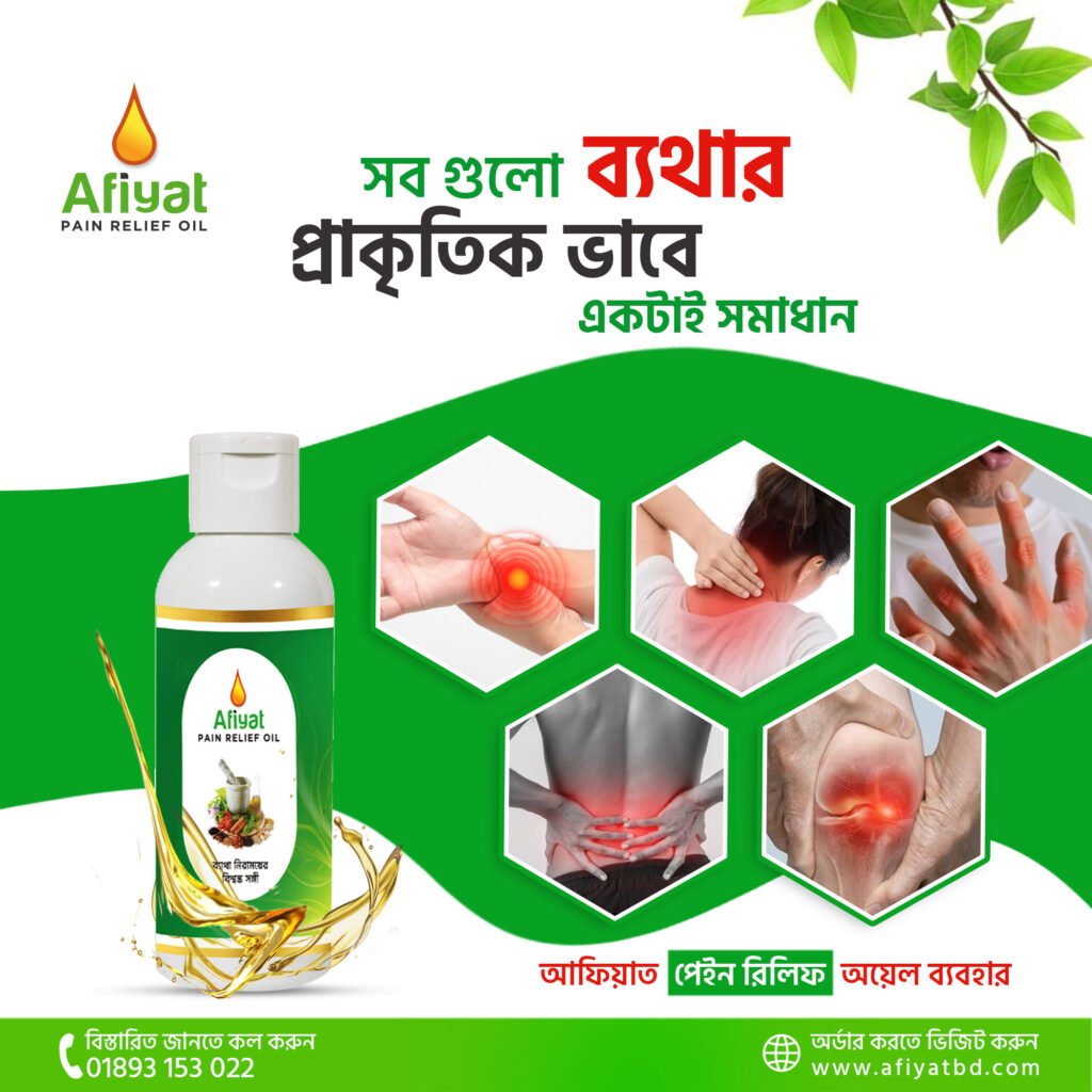 বিভিন্ন ব্যথার কারণে শারীরিক কষ্টে ভুগছেন? অথবা পুরাতন ব্যথার কারণে কোন কাজ করতে পারছেন না? তাই আপনাদের কথা চিন্তা করে আমরা নিয়ে এসেছি “AFIYAT PAIN RELIEF OIL”